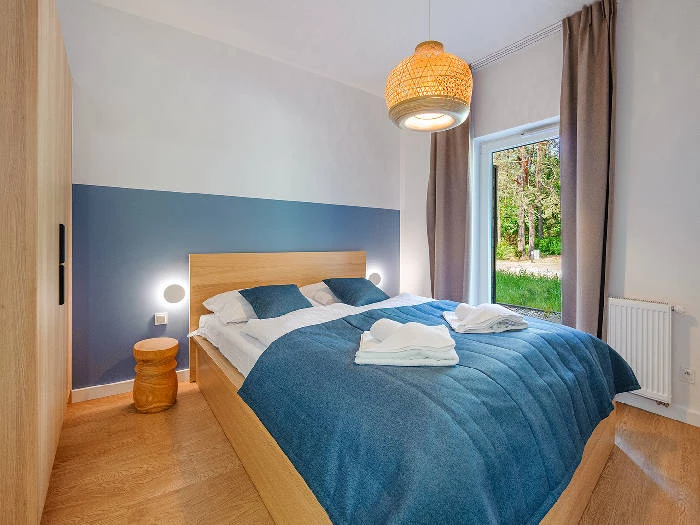 Przestronny salon zaprasza do relaksu na wygodnych meblach, z dostępem do telewizji i internetu. W sypialni czekają komfortowe łóżka z czystą pościelą, które gwarantują spokojny sen po dniu spędzonym na Mazurach. W łazience znajdziesz prysznic, ręczniki i podstawowe środki czystości, a przypisane miejsce parkingowe oraz możliwość przyjazdu z pupilem w wybranych apartamentach dodatkowo podnoszą komfort pobytu.