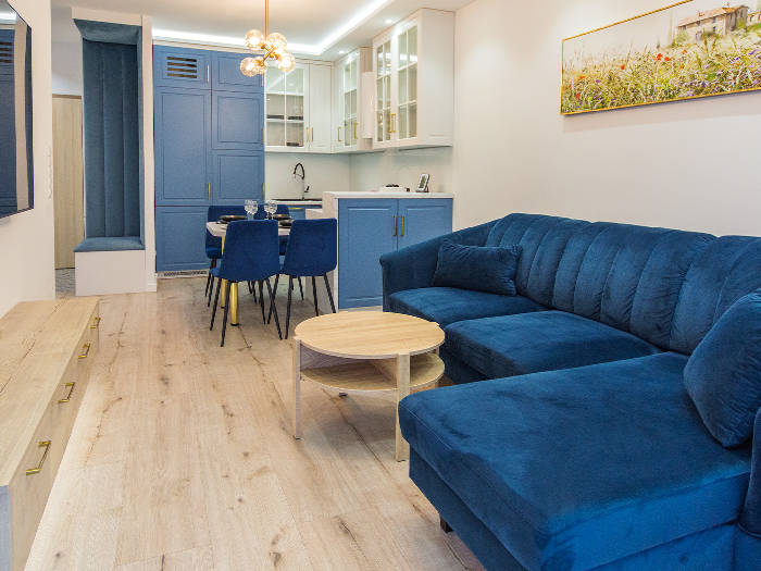 Przestronne apartamenty Standard to doskonały wybór dla par, rodzin lub małych grup do 4 osób, które cenią komfort i swobodę podczas pobytu nad morzem. Wnętrza obejmują oddzielną sypialnię z dużym łóżkiem, salon z rozkładaną sofą, nowoczesną łazienkę z prysznicem oraz aneks kuchenny wyposażony we wszystko, co potrzebne do przygotowania posiłków. Dodatkowym atutem jest balkon, który pozwala cieszyć się świeżym, nadmorskim powietrzem. Na Gości czekają także telewizor i bezpłatny dostęp do Internetu, zapewniające wygodę przez cały pobyt.